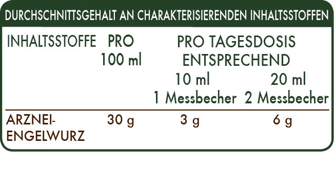 Die Arznei-Engelwurz unterstützt die Fließfähigkeit des Bronchialsekrets, begünstigt die Verdauungsfunktion und hilft bei der regelmäßigen gastrointestinalen Motilität und der Beseitigung von Blähungen.