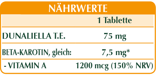 * Menge an Beta-Carotin entsprechend 150% NRV als Retinoläquivalente.