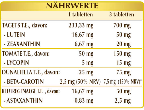 *entspricht 1200 mcg (150% NRV) als Retinoläquivalent (Vitamin A).
