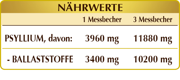 Wir empfehlen die Einnahme von 1 gestrichenen Messbecher (4 g) aufgelöst in einem Glas Wasser (mind. 250 ml), ein- bis dreimal am Tag zu jeder Zeit (4 bis 12 g täglich). Gießen Sie das Pulver in das trockene Glas, fügen Sie das Wasser hinzu und mischen Sie es. Graduierter Messbecher in der Packung enthalten. Nach Gebrauch sorgfältig wieder schließen.