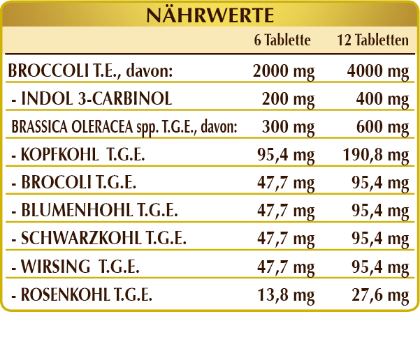 Brokkoli, Blumenkohl und alle verwendeten Kohlarten üben eine wohltuende antioxidative Wirkung aus und fördern die regelmäßige Funktion des Herz-Kreislauf-Systems. Darüber hinaus unterstützen sie die Verdauungsfunktion und tragen zur Erhaltung einer normalen Gelenkfunktion bei.