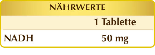 Maltodextrine aus Mais oder Reis, NADH (Nicotinamid-Adenin-Dinucleotid), mikrokristalline Cellulose°, Gummi Arabicum°, Siliciumdioxid°°, Magnesiumstearat Pflanzlichen Ursprungs°°.