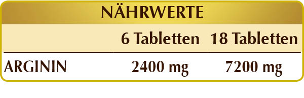 (L-)Arginin, mikrokristalline Cellulose°, Gummi Arabicum°, Siliciumdioxid°°, Magnesiumstearat pflanzlichen Ursprungs°°.