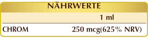 Wir empfehlen die Einnahme von 1 ml einmal täglich, in Wasser oder direkt in den Mund, vor allem in Verbindung mit der Aufnahme von Kohlenhydraten und Süßigkeiten. Um die Aufnahme zu fördern, wird empfohlen, die Tropfen direkt in den Mund zu geben (sublinguale Verabreichung) und 1 Minute oder länger zu warten, bevor man schluckt. Pipette in dem Paket enthalten.