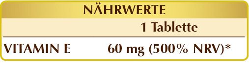 Maltodextrine aus Mais oder Reis, Vitamin E natürlicher Herkunft (D-α-Tocopherylacetat), mikrokristalline Cellulose°, Gummi Arabicum°, Siliciumdioxid°°, Magnesiumstearat Pflanzlichen Ursprungs°°.