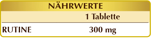 Rutin pflanzlichen Ursprungs, maltodextrine aus Mais oder Reis, Gummi Arabicum°, mikrokristalline Cellulose°, Siliciumdioxid°°, Magnesiumstearat pflanzlichen Ursprungs°°.