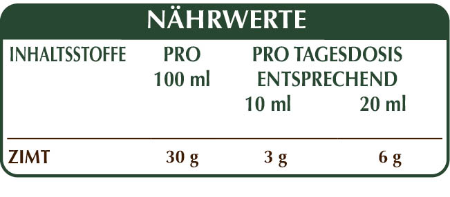 Bidestilliertes pflanzliches Glycerin, reines Wasser, Zimt (Cinnamomum zeylanicum) Rinde F.G.E.