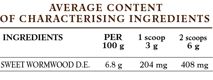 Maltodextrins (corn or rice-based), Artemisia annua leaf extract.