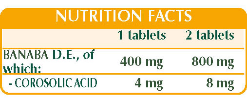Banaba (Lagerstroemia speciosa) leaf D.E. (standardized to 1% corosolic acid), microcrystalline cellulose°, acacia gum°, silicon dioxide°°, vegetable-origin magnesium stearate°°.