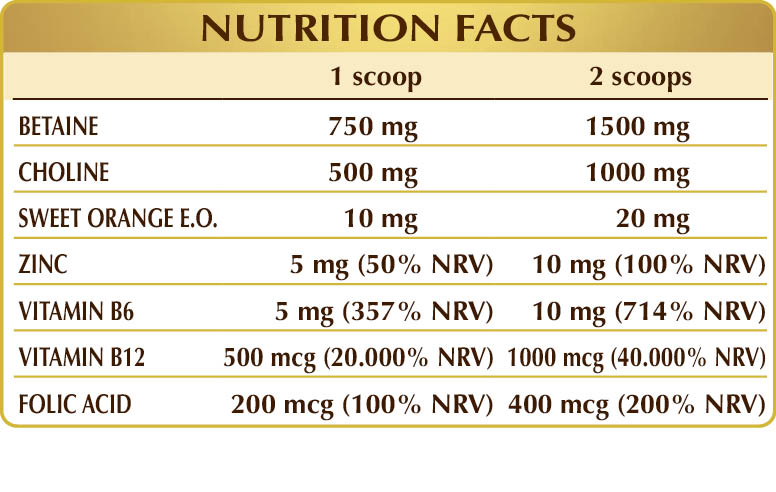 *The beneficial effect is obtained with a daily intake of 1.5 g (1500 mg) of betaine.