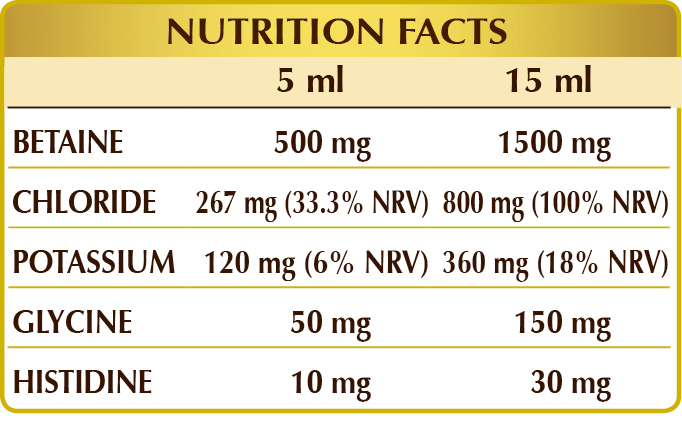 BETAINE HYDROCHLORIDE Alcohol-free liquid