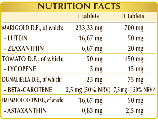 *corresponding to 1200 mcg (150% NRV) as retinol equivalent (vitamin A).