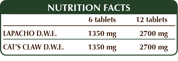 CAT'S CLAW and LAPACHO Dry Whole Extract Tablets