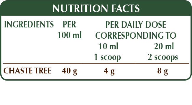 Alcohol-free whole liquid extract obtained from: bi-distilled vegetable glycerine, pure water, chaste tree (Vitex agnus-castus) fruits.