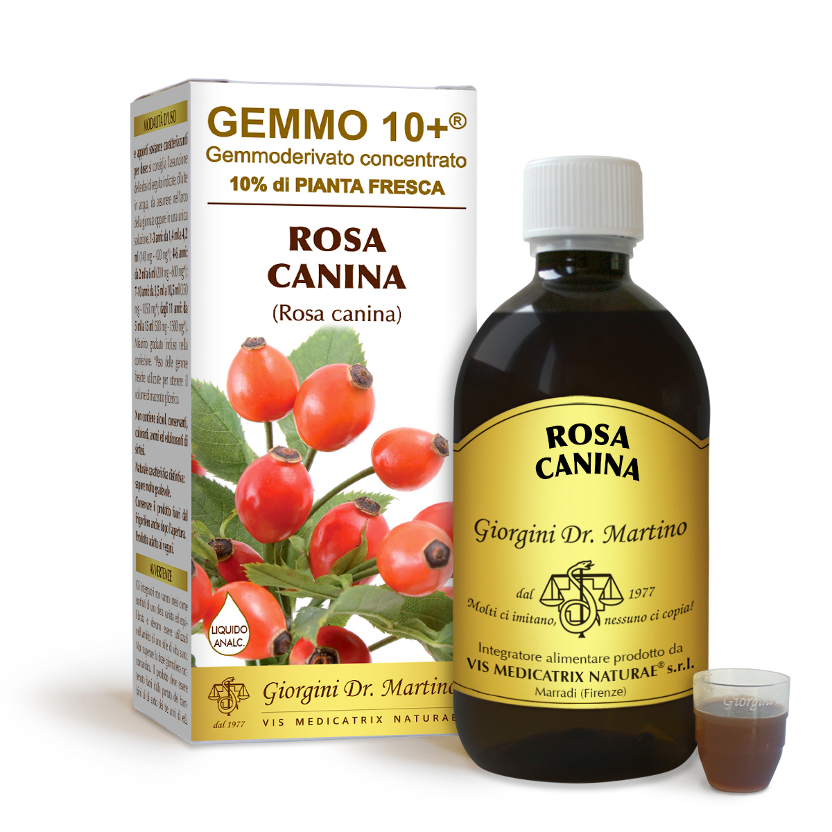 Liquid alcohol-free bud extract obtained from: bidistilled vegetable glycerine, pure water, dog rose (Rosa canina) young, fresh shoots (10%).