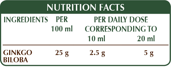 Alcohol-free whole liquid extract obtained from: bi-distilled vegetable glycerine, pure water, ginkgo or maidenhair tree (Ginkgo biloba) leaves.