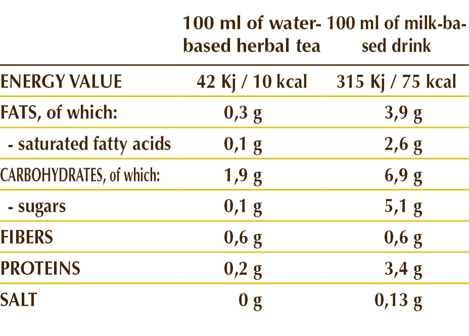*prepared with 1 measuring spoon of product in 200 ml of water/pasteurized whole milk, as per instructions.