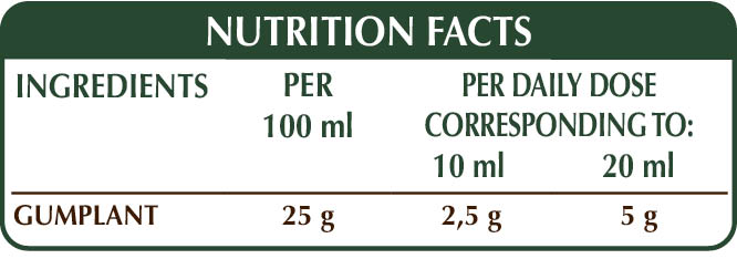 Gumplant has a soothing effect, helps improve the upper respiratory tract function and has an emollient effect on the oropharyngeal mucous membranes and on the voice.