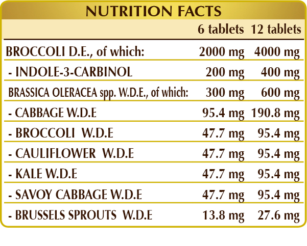 Food supplements should not be used as a substitute for a varied and balanced diet and should be consumed as part of an overall healthy lifestyle. Do not exceed the recommended daily dose. Keep the product out of reach of children younger than 3 years of age. It contains cabbage: do not use in case of thyroid dysfunction.