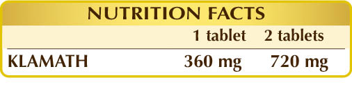 Klamath algae (Aphanizomenon flos aquae) cyanobacteria blue-green algae) powder (with a phycocyanin≥ content of 8%), maltodextrin from corn or rice, plant-based magnesium stearate°°, silicon dioxide°°, arabic gum°, microcrystalline cellulose.°