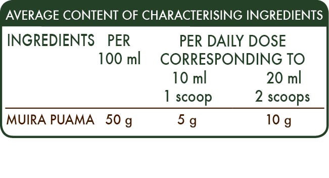 Muira Puama has a tonic action useful for counteracting physical and mental fatigue and exerts a beneficial, antioxidant effect.