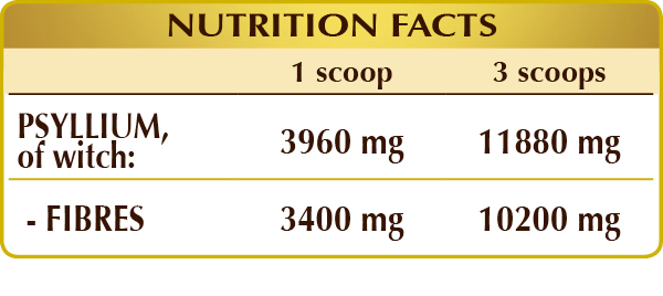 Psyllium, thanks to its high content of prebiotic fibres, helps you keep your bowel clean, normalising stool volume and consistency and promoting regularity of bowel movements. Additionally, it has an emollient and soothing effect throughout the digestive tract and regulates the metabolism of carbohydrates and lipids, limiting their absorption during meals.