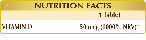 Vitamin D contributes to theabsorption and utilisation of calcium and phosphorus, helps maintain normal levels of calcium in the blood, supports the immune system function, and has influence on the cell division process, maintains normal muscle function and healthy bones and teeth.
