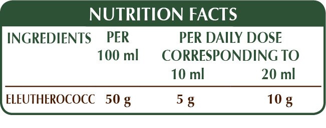 Alcohol-free Whole Liquid Extract made from: double-distilled vegetable glycerin, pure water, Siberian ginseng (Eleutherococcus senticosus) roots.