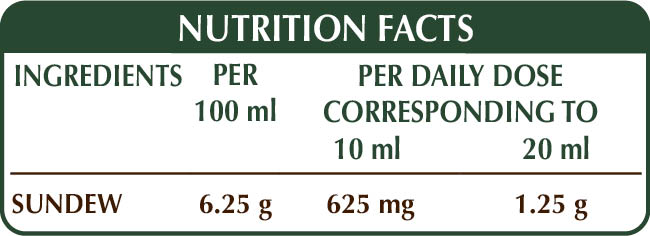 Sundew promotes the fluidity of bronchial secretions and has an emollient and soothing action useful for maintaining healthy oropharyngeal mucous membranes and normal voice.