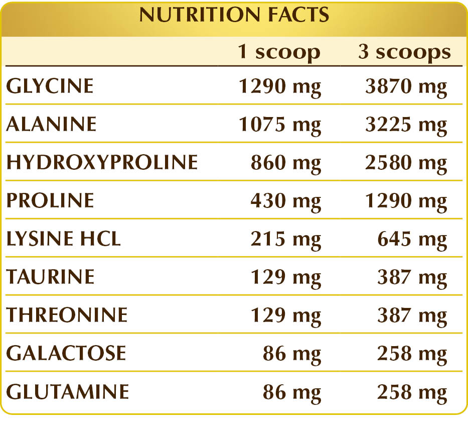 Food supplement of the main amino acids that are precursors of elastin and collagen.