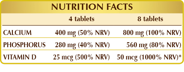 Calcium, phosphorus and vitamin D are primarily useful in keeping normal bones and teeth. Vitamin D plays a key role in enhancing phosphorus supply as well as maintaining a healthy balance of calcium and phosphorus in the blood. In addition, it sustains normal function of the immune system. In combination with calcium, it contributes to the maintenance of muscle function and takes part in the cell division process. Calcium also contributes to normal neurotransmission and blood clotting and, combined with phosphorus, supports energy metabolism.