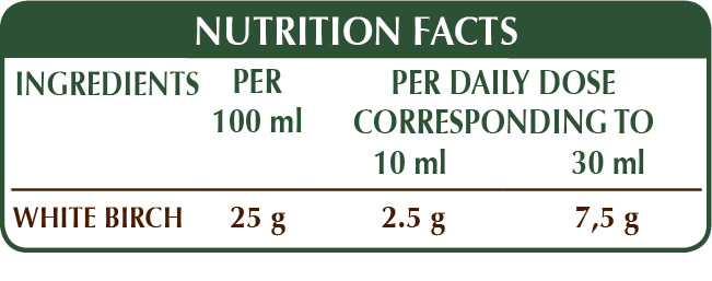 Birch promotes drainage of body fluids, supports normal functioning of the urinary tract and improves body's cleansing functions.