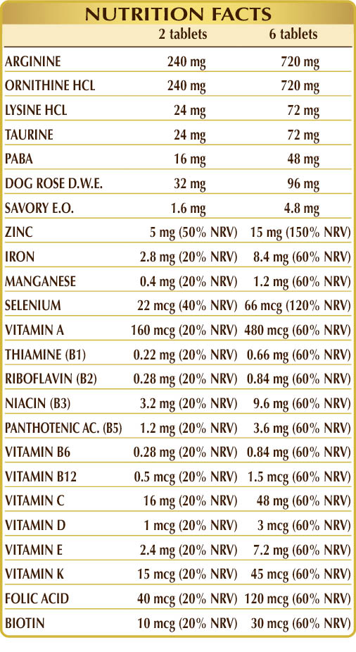 W.D.E. = Whole Dry Extract Plant extraction, which we carry out in-house, is under vacuum and at low temperature to preserve all the active and nutritional ingredients (i.e. the phytocomplex) intact; on average from 4 kg of plants we obtain 1 kg of dry extract (4: 1). Possible colour variations in the tablets between different lots of products, replicate the natural variations of the plants used, as they do not contain synthetic ingredients.