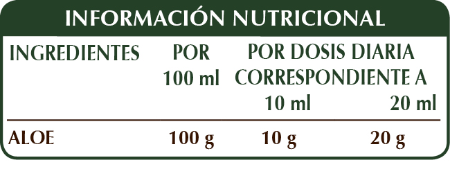 El aloe ayuda a favorecer las funciones depurativas del organismo, ejerce una acción emoliente y lenitiva en el sistema digestivo y promueve el bienestar de la garganta.