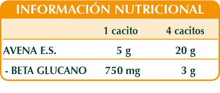 La avena posee un elevado contenido de beta-glucanos que contribuye al metabolismo del colesterol ayudando a mantener unos niveles en sangre normales*. Además, la avena favorece la regularidad del tránsito intestinal, ejerce una acción emoliente y lenitiva en el sistema digestivo y promueve el bienestar mental y la relajación en caso de estrés.