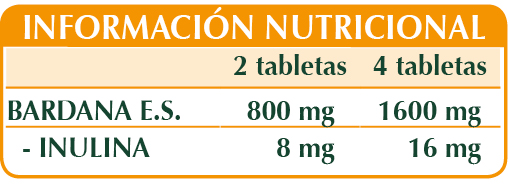 BARDANA extracto estandarizado Tabletas