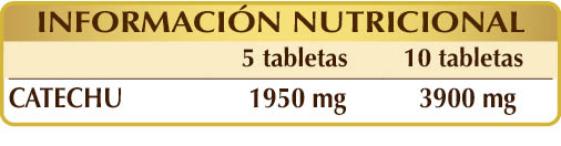 Catechu (Acacia catechu) goma, celulosa microcristalina°, dióxido de silicio°°, estearato de magnesio de origen vegetal°°.