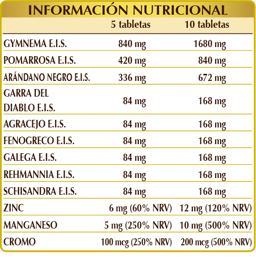 E.S. = Extracto Seco E.I.S. = Extracto Integral Seco. NRV= Valore Nutritivo de Referencia.