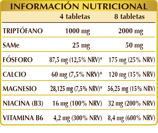 Complemento alimenticio a base de triptófano, hierbas y otros nutrientes. Las vitaminas B3 y B6 y el magnesio contribuyen al buen funcionamiento del sistema nervioso y de la función psicológica.