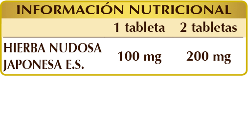 Complemento alimenticio a base de extracto de raíces de hierba nudosa japonesa que poseen propiedades antioxidantes, favorecen la fluidez de las secreciones bronquiales, promueven las funciones depurativas y el drenaje de los líquidos corporales, ayudan a regular el ciclo menstrual y contribuyen al buen funcionamiento del aparato cardiovascular. Además, ejercen una acción tónica útil para combatir el cansancio físico y mental.