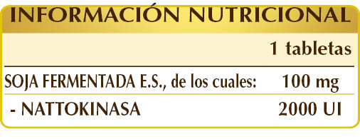 Complemento alimenticio a base de extracto de soja fermentada que contiene la enzima nattokinasa con acción fibrinolítica. La nattokinasa se aísla del natto, un alimento producido por la fermentación de soja no modificada genéticamente con una cepa seleccionada de Bacillus subtilis var. natto.
