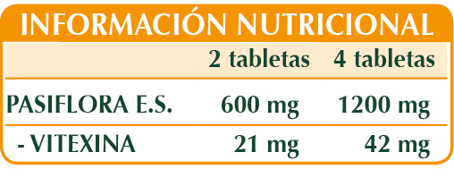 PASIFLORA extracto estandarizado Tabletas