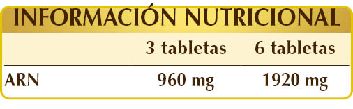 ARN sal sódico (extracto de levadura), celulosa microcristalina°, goma arábiga°, dióxido de silicio°°, estearato de magnesio de origen vegetal°°.