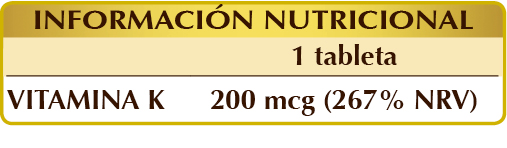 La vitamina K contribuye a la coagulación normal de la sangre y al mantenimiento normal de la salud de los huesos.