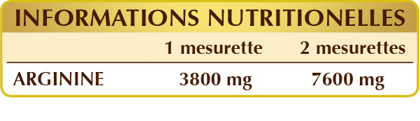 Supplément d’arginine, indiqué lorsque l’on souhaite augmenter l'apport de ce nutriment dans l’alimentation.