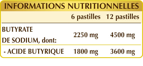 Supplément de butyrate de sodium, source d'acide butyrique.