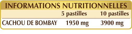 Acacia à cachou (Acacia catechu) gomme, cellulose microcristalline°, dioxyde de silicium°°, stéarate de magnésium d’origine végétale°°.