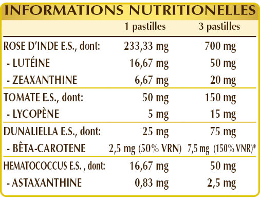 *correspondant à 1200 mcg (150% VNR) en équivalent rétinol (vitamine A) .