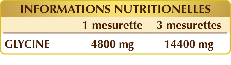 Supplément de glycine, indiqué lorsque l’on souhaite augmenter l'apport de ces nutriments dans l’alimentation.