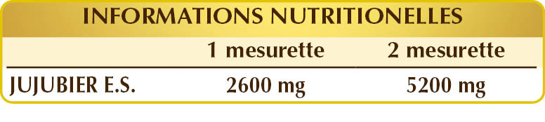 L’extrait de fruits de jujubier exerce une action émolliente et apaisante sur le système digestif et contribue à favoriser le transit intestinal.